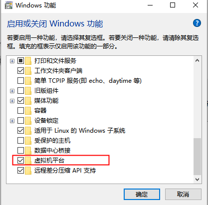 注意:重启电脑,启用这两个功能需要分两步启用,要重启两次电脑,被坑过!!!