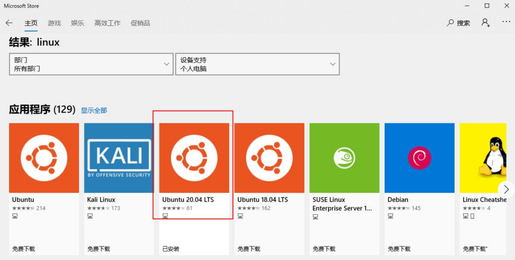 安装所选的 LINUX 分发,我的是UBUNTU 20.04